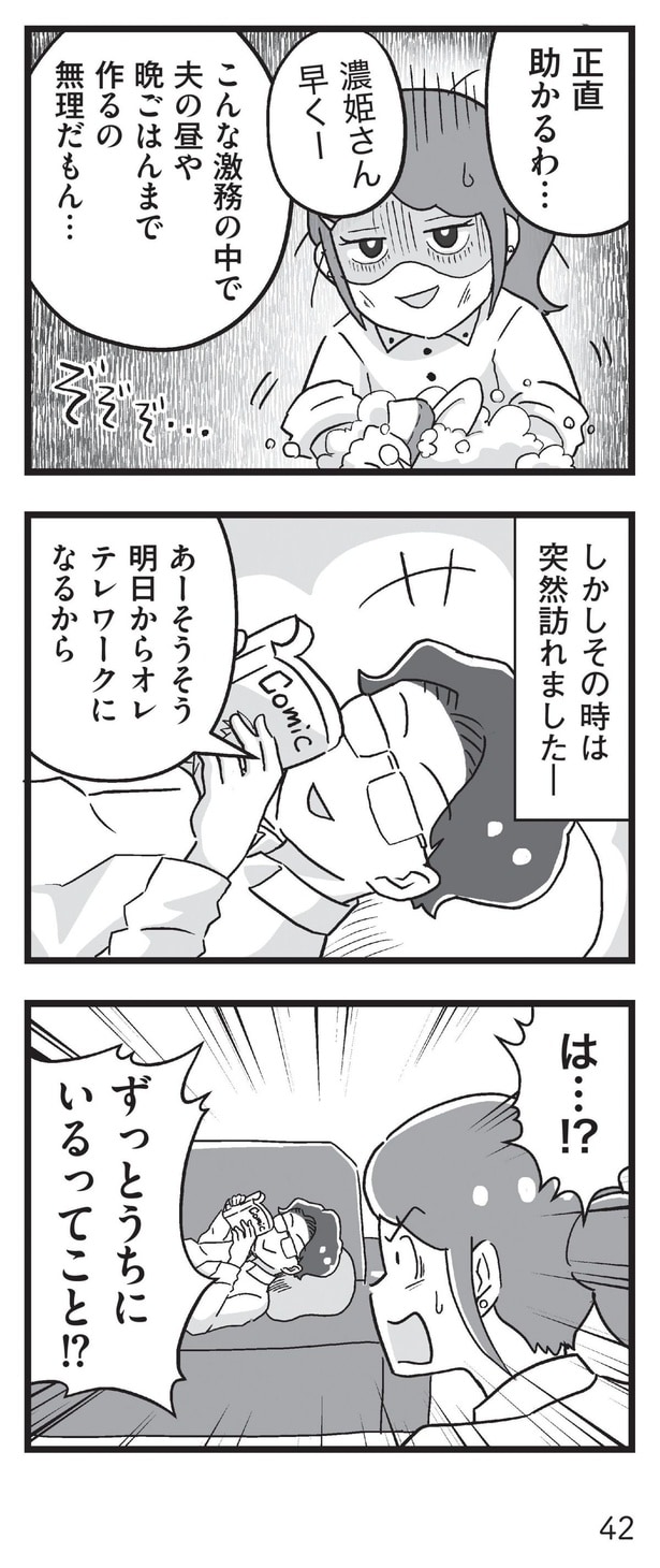 前回、24歳年下に彼女から車で事故をして200万必要だと言われた義兄。家族の反対を押し切り自分の貯金から200万を渡した義兄だったが、案の定、その後連絡が途絶えてしまった…。ある日、夫が突然テレワークに。昼夜外食だった夫は、勤務中の濃姫にわざわざ昼食を作るよう要求してきて…!?