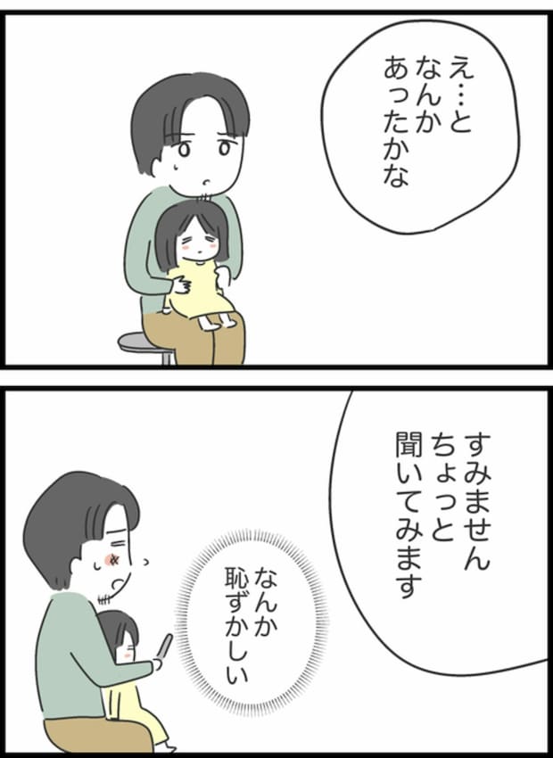 保育園にお迎えに行き、そのまま小児科に向かう夫。小児科の先生に普段飲んでいる薬を聞かれるも、全く分からない夫は、妻に電話するのでした。