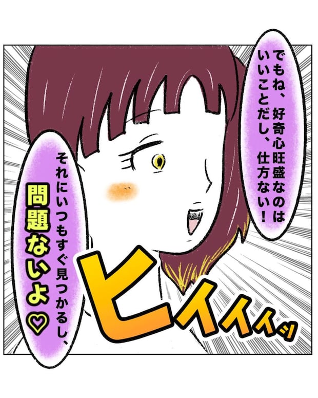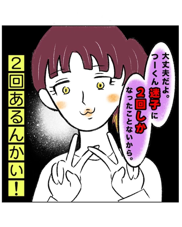 「でもね、好奇心旺盛なのはいいことだし、仕方ない!それにいつもすぐ見つかるし、問題ないよ!」と迷子になったことを全く気にしていないつーくんママにまるさんは唖然。