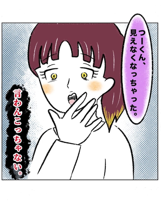 「つーくん、見えなくなっちゃった」と言いながらもあせる様子もないつーくんママ。まるさんは心の中で「言わんこっちゃない」とつぶやきました。