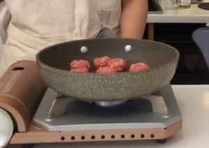 4.丸めた肉だねを、油(分量外)をひいたフライパンで両面を焼き(弱めの中火)、火を通します。