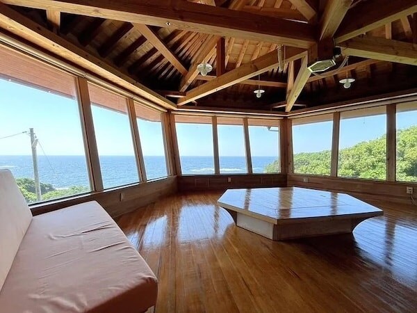 もう1軒が貸別荘「カーサ・マーレ」。プライベートビーチのような海を望む絶景に建つ別荘で、サウナやBBQなどアウトドア体験が満喫できる。
