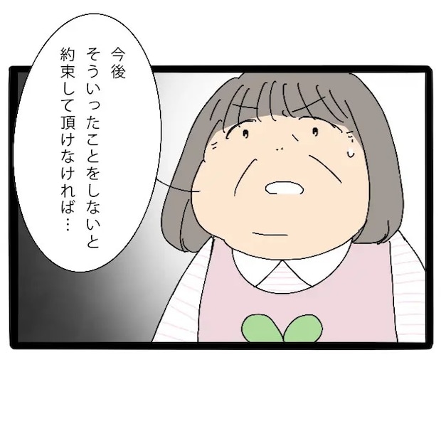 部屋の空気がぴんと張り詰めます。園長先生はさらに表情を引き締め、重い口調で続けました。「今後そういったことをしないと約束していただけなければー・・・」