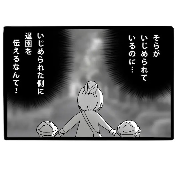 その後も話は平行線のまま。そらのいじめについて訴えても、園長先生は「お母さんの行動が問題です」の一点張り。これ以上まともな話し合いはできない、そう感じた私は、モヤモヤとした気持ちを抱えたまま園を後にしました。そらがいじめられているのに・・・いじめられた側に退園を迫るなんて!