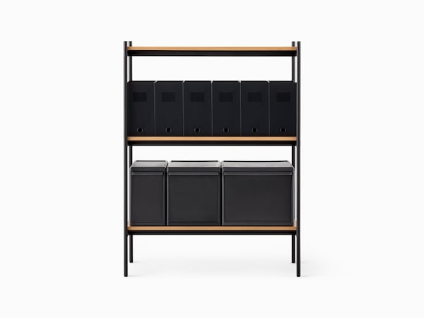 「シェルビングシステム」には、長く使えるよう傷が目立ちにくい粉体塗装を施した丈夫なスチールを採用。