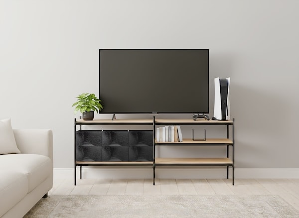 また、壁際に設置してもケーブル類が通せるクリアランスが設けられており、テレビ台や作業台としてもおすすめだ。