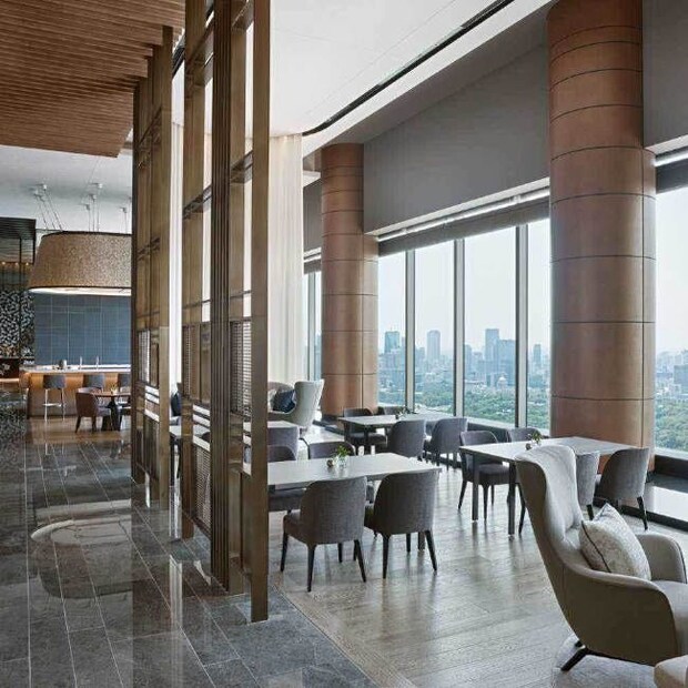 天井から床までの窓一面に緑豊かな皇居の森、そして晴れた日には富士山まで見渡せる絶景が広がる「THE LOUNGE」。ティーソムリエが選ぶ日本茶のセレクションとともに、エグゼクティブペストリーシェフによるスイーツや和の食材を取り入れたセイボリーが美しく盛り付けられたアフタヌーンティー、創造性あふれるパフェやデセール、カクテルタイムなど、時間帯やシーンに合わせて美しい眺望とダイニング体験を楽しめる。