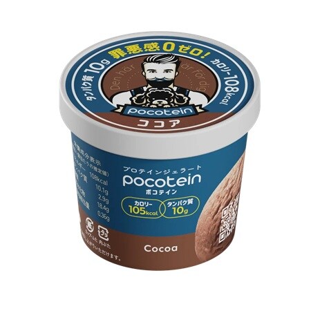 「pocotein」希望小売価格298円(税込)は、内容量120mlで、フレーバーはバニラ・ココア・めっちゃ抹茶・黒ごまきなこを展開している。タンパク質含有量は1個10gだ。