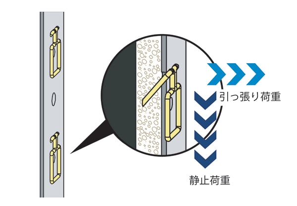 オリジナル止め金具であるWV金具の爪は細く、抜き跡も小さいため、壁への傷を最小限に抑えられる。抜き跡も市販のパテで補修可能だ。