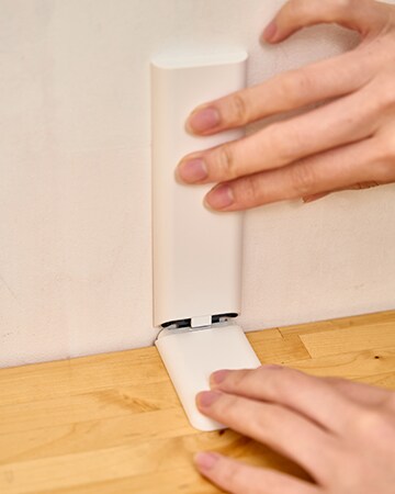 ホワイトカバーのおかげで金具が見えず壁に自然に馴染む。壁に溶け込み、室内の雰囲気を損なわない。さらに、L金具には電着黒塗装を施し高級感を演出しているので、部屋や家具に合わせてカバーを付けずに使用することも可能だ。