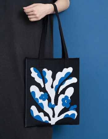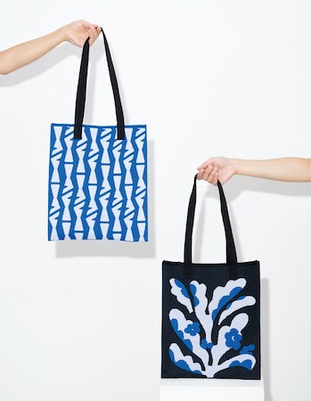 ブランドの第一歩となる同作は、「石川らしさ」を日常に取り入れることをテーマに生まれた。今回発売する「amiiro トートバッグ」シリーズは、石川の自然や文化をモチーフにした5つの柄を展開。伝統的なモチーフをピクセルのように細やかに編み上げ、新しい「石川の表情」を描き出している。