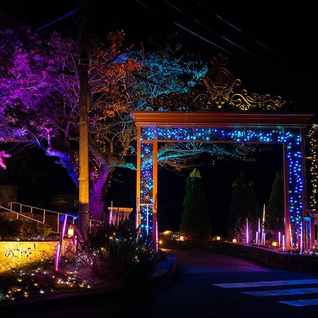 昨年登場した「魔法の教会」が、今年も楽しめる。夜になると魔法の光があふれるれる館を舞台に、新ストーリーのプロジェクションマッピング「女王の願いが輝く物語」を展開。