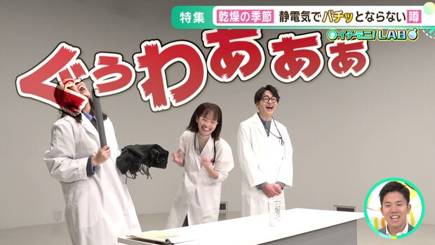 「ぐわああ!」と絶叫。 火花こそ見えないものの、強烈な痛みが走った様子。もえり助手は「ヤラセ無しです!」と、実験のガチ度をアピールします。