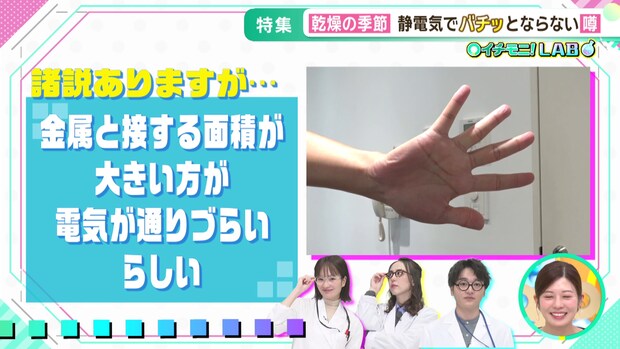 なぜ、手のひらだと痛くないのか。これには「金属と接する面積が大きい方が電気が通りづらい」という理屈があるそうです。