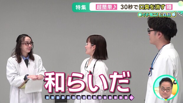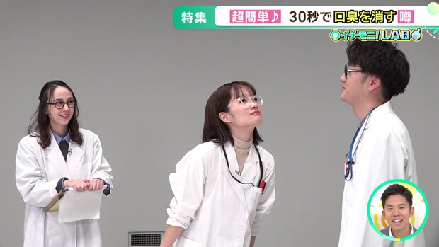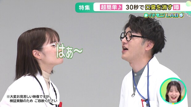 そして、運命の再チェック。 もり助手が再びみちあき助手の息を嗅ぐと……「あれ?!」と驚きの表情。 「(臭いが)和らいだ!」
