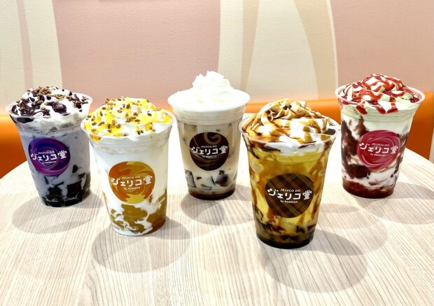 「ジェリコ」はもともと、2014年からコメダ珈琲店で販売されている人気商品だ。アイスコーヒーにコーヒーゼリーを合わせ、ホイップをのせたデザートドリンクで、定番のほか季節限定のコラボ商品も展開してきた。バリエーションを広げやすく、コメダらしさもあることから、新業態として「ジェリコ堂」を開発した。