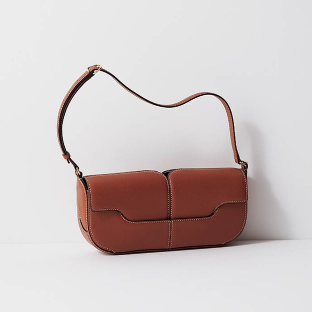 「新作は毎回即完売! インスタを要チェック」スタイリストの佐藤佳菜子さんが手がけるバッグブランド、メゾン カナウ。シンプルなスクエアバッグはマルチに使え、特に学校行事に最適と人気。ハンドルが細くスタイリッシュなんですよね。バッグ[H15.5×W20×D9㎝]¥68,200(メゾン カナウ/ヤマニ)