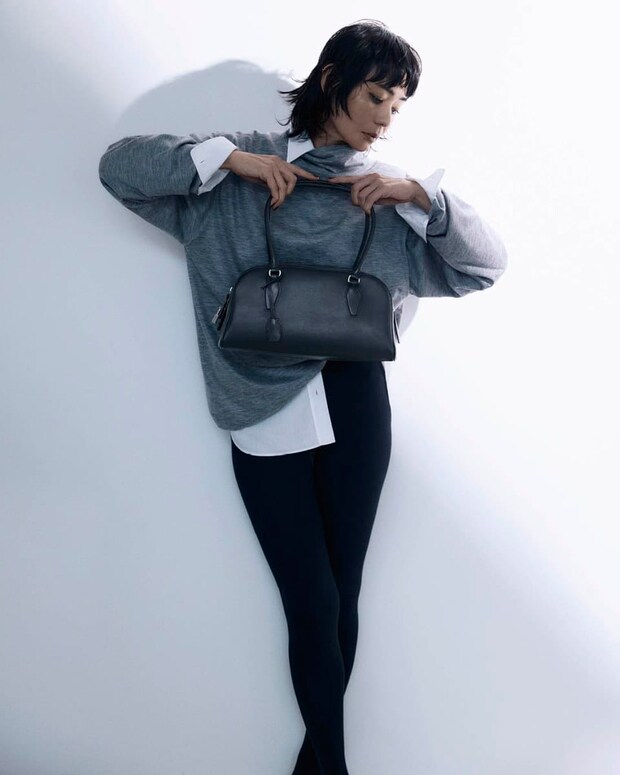 COZさんいわくザ・ロウは“上質シンプルの極み”。その言葉のごとく、新作コレクションは無造作に見えて完璧に計算されたスタイリングで、現代的でノンシャランなムードを醸し出しています。これは絶対にみんな好きなやつ! 「最高級の素材と技術があるからこそ成立するスタイリング。私は、まるで自宅⁉ みたいなこのルックが大好きで、全身買いしたいくらい。しなやかな落ち感のカシミアニットにシャツを重ねたムード、着こなし方も秀逸。スタイリストとしてはそこも見逃せないポイント。極めつきは、ボトムがonlyタイツ。パンツライクにはくこの新感覚さがザ・ロウよね」。人気の“INDIA”シリーズに、この冬に新しく加わるバッグ“E/W INDIA”は、横長フォルムに肩掛けできるストラップで実用性抜群!