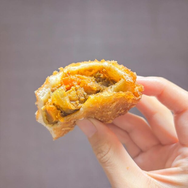 こちらは店長さんイチオシのカレーパン!手に持つとずっしり、具材がたっぷり入っているのが伝わります。