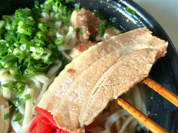 、出汁の旨みがたまらない......!ロピアの「ソーキ蕎麦」は具材もたっぷり