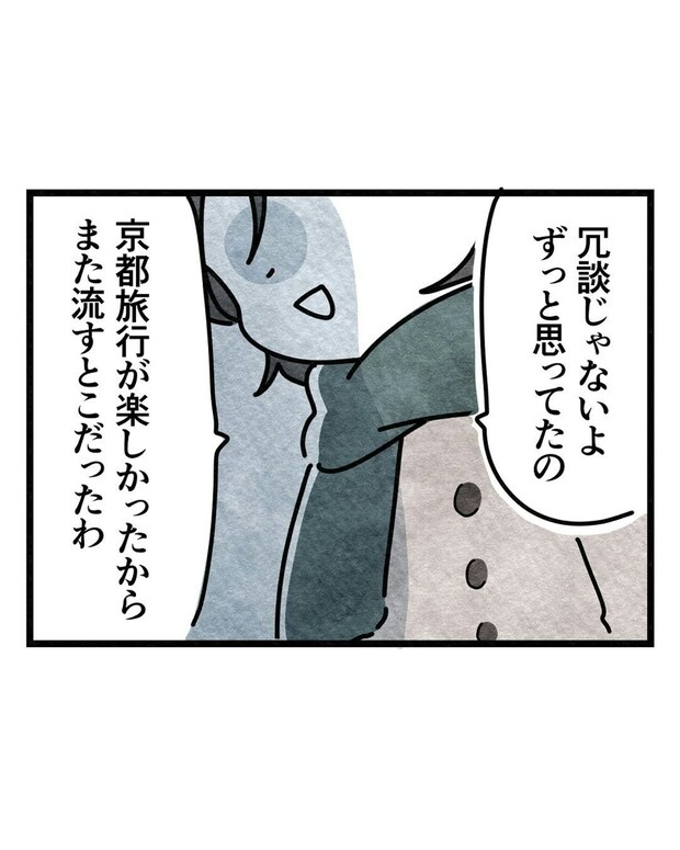 京都での結婚式は滞りなく終わり、帰途についた2人でしたが、帰りの電車が「運転再開の見込みなく」遅延。寒風吹きすさぶ中でいつ来るとも分からない電車を待つことに…。ちょうど生理が始まってしまったさほは、重い生理痛のため、電車を待つのではなくもう一泊したいとふうかに告げます。