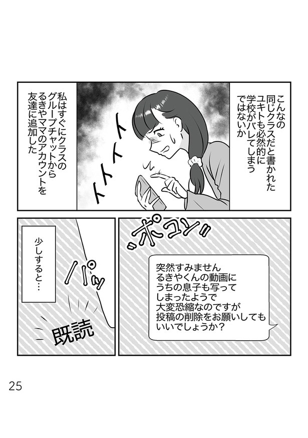 子どものスマホトラブルに立ち向かう親子の姿をリアルに描く「うちの子を配信しないで!息子を動画で晒すママ友」」(漫画:碧海自由、原作:リアコミ)から、8回連載でお届け。今回は第3回となる。