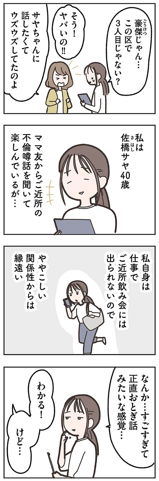 2年前の春に夫が突然、失踪した――。40歳のサヤは現在、子どもふたりとの3人暮らし。以前は穏やかだった夫がブラック企業勤めで鬱になり、休めないストレスから次第に発言が攻撃的になっていった。情緒不安定な夫の機嫌にずっと振り回されていた家族たちは、家に夫がいなくなったことで心配する反面、解放されたような気持ちになるのだった。もし、夫が帰ってきたら…。そんな葛藤を抱きながら今の生活に安らぎを感じていたある日、サヤの目の前に昔の恋人が現れて――?