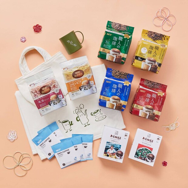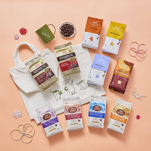 飲用スタイルや好みに合わせて選べるよう、豆・粉・ワンドリップの3種セットや、UCC独自技術「フレッシュキューブ」を使用したセット、上島珈琲店の限定グッズ付きセットなどが用意されていますよ。