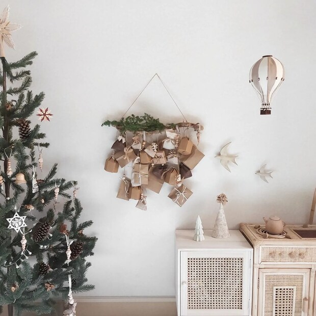 お家のインテリアや普段使用している収納アイテムなどを使って、アドベントカレンダーを作るアイディアも。