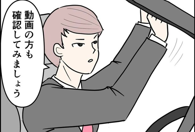 邦夫と女性職員が乗った車がすれ違った後、動画を確認した星野と佳奈さん。ちゃんと撮れていて一安心です。