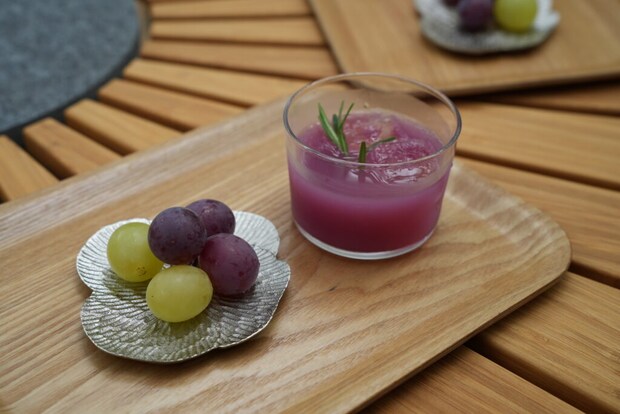 日によって内容は変わるそうですが、この日はぶどうジュースと、ぶどう&シャインマスカットをいただきました!