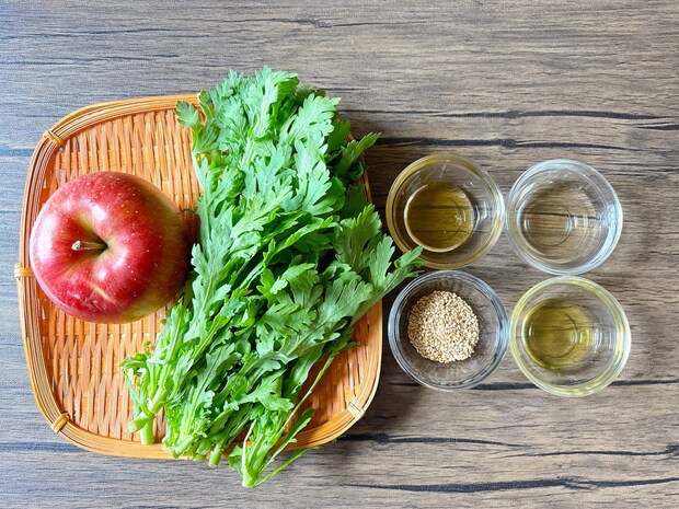 レシピ1. 春菊とりんごのシャキシャキサラダ