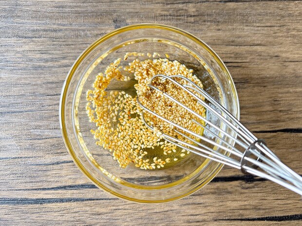 調味料と白いりごまを混ぜておきます。