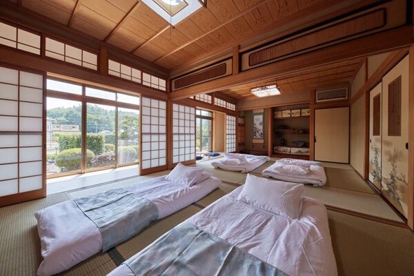 1階には畳の香りが心地よい和室にシングル布団4組と、