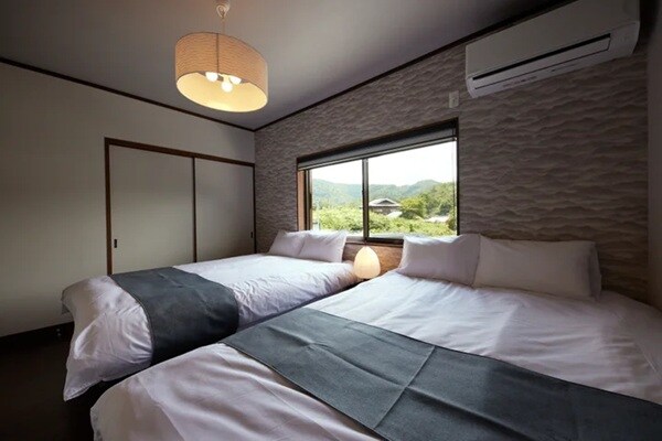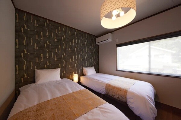 ダブルベッド2台を備えた洋室がある。両方の部屋からは、ふすまを開けると庭の景色を楽しめ、縁側からそのまま庭へ出ることもできる。