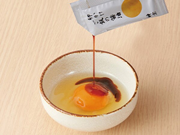 卵を小鉢に割り入れ「卵かけご飯の醤油」1袋を加えて混ぜる