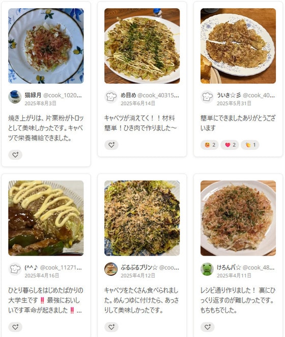 にも「キャベツがたっぷりで嬉しい」「食べ出したら止まりません」など、レシピを絶賛するコメントが届いています。