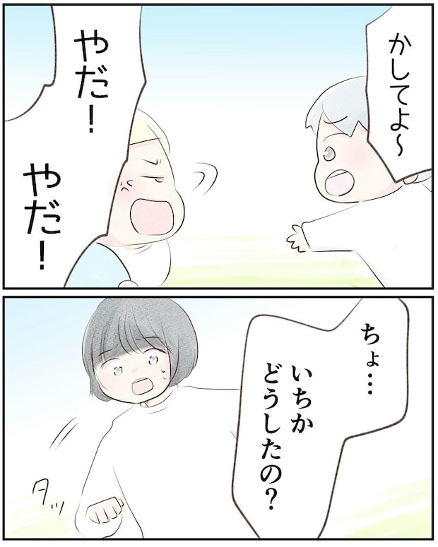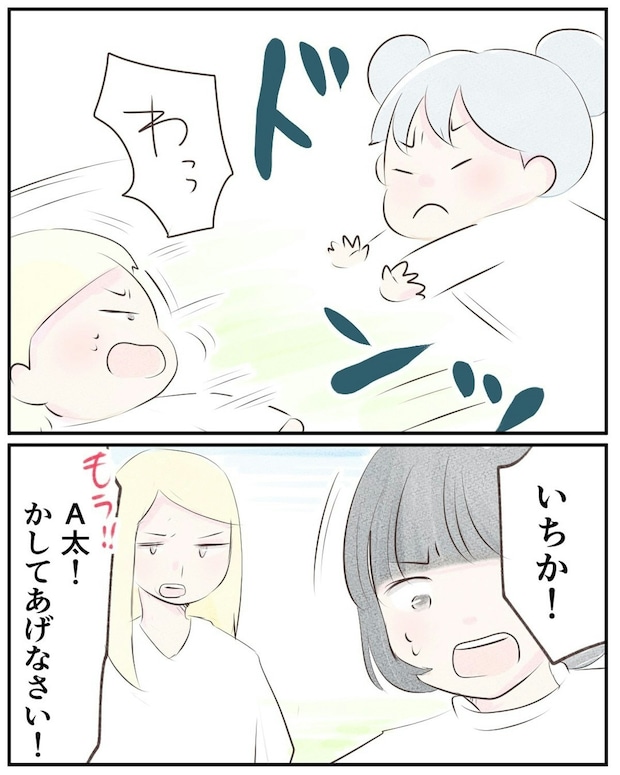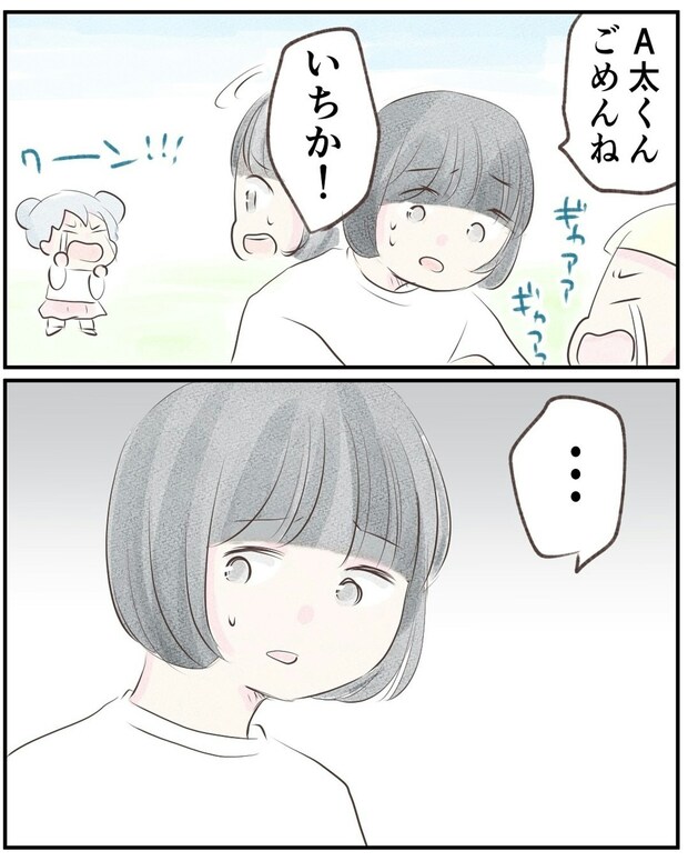 大泣きするA太君といちかちゃん。とりあえず、いちかちゃんが突き飛ばしたA太君に謝りますが、この状況は丸く収まるのでしょうか。