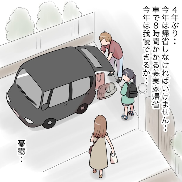 はぁ・・。4年ぶりに義実家に帰省することになった私。行かないわけにはいかないとわかっているのですが・・。車で8時間かかる義実家帰省、今年は我慢できるのだろうか・・不安でなりませんでした。