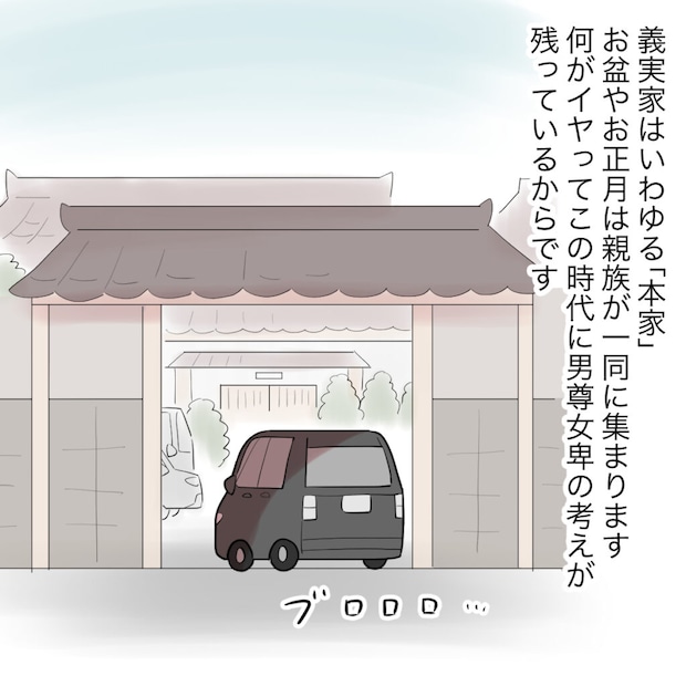夫ミノルさんの実家に親戚一同が集まるため、久しぶりに家族で帰省することになりましたが、男尊女卑の考えが色濃く残る義実家帰省が憂鬱なナオミさんのお話です。