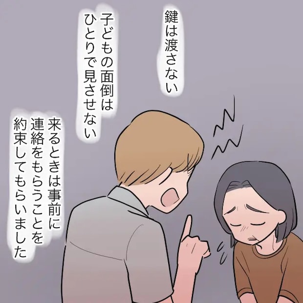 そして、義母に鍵は渡さない、子どもの面倒はひとりで見させない、来るときは事前に連絡をもらうことを約束してもらいました。夫から厳しく言われ、さすがの義母もしゅんとして反省していたようです。