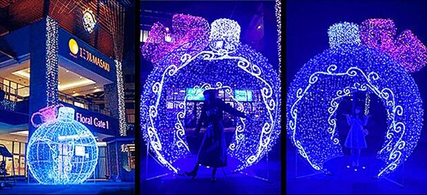 イチオシは、フローラルゲート1前の「LEDデコレーションボール」。