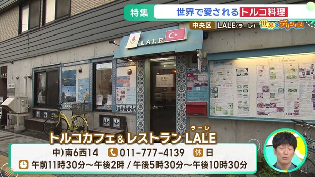 次にモエーリ・カツミが訪れたのは、世界三大料理の一つに数えられるトルコ料理の専門店、札幌市中央区の「トルコカフェ&レストラン LALE(ラーレ)」です。