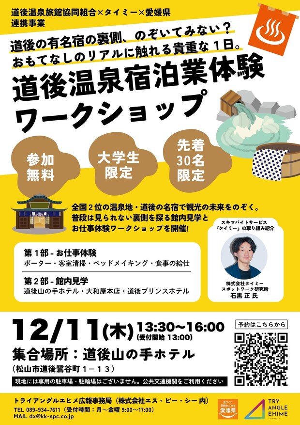舞台は、日本有数の温泉地・道後。 歴史ある温泉街で、あなたの“これから”につながる学びを、ぜひ体験してみませんか?