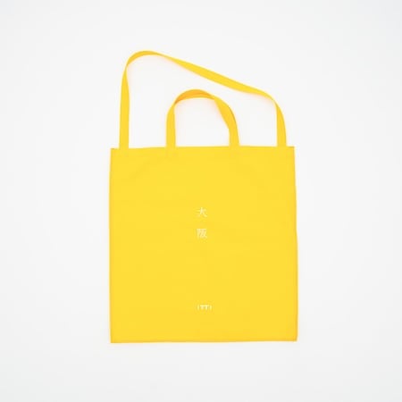 ノベルティトートバッグは、ITTIを象徴するイエローに、「大阪」の刺繍を配した特別仕様。ハンドルとショルダーの2WAYで使える。