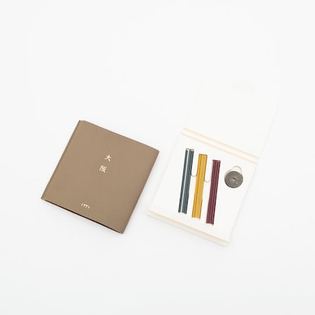 さらに、ITTIのレザー廃材で仕立てた特別仕様のスリーブケースに、松栄堂の伝統的な香り3種を収めた「ITTI OSAKA」限定インセンスセットを用意している。