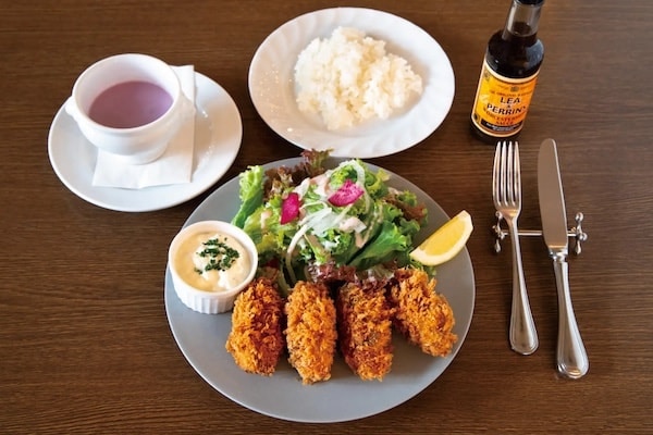 ランチはセット、ディナーは単品でカキフライを提供