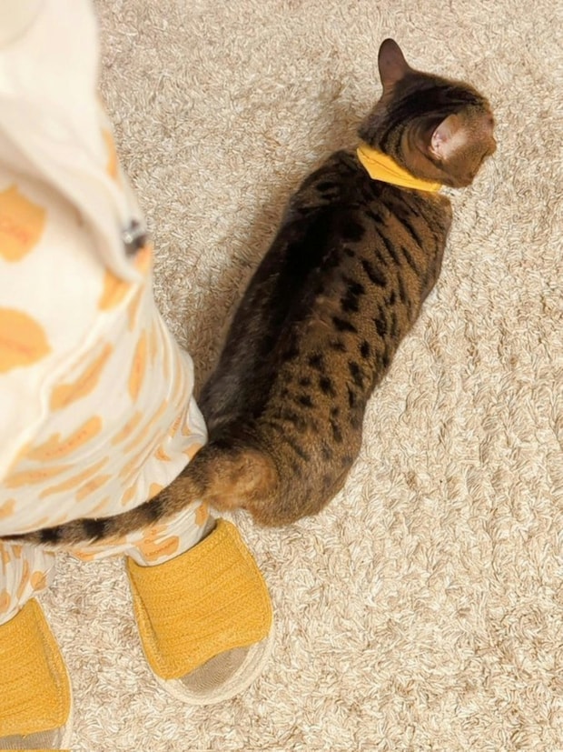 飼い主の足にしっぽを絡ませ…愛猫の愛情表現にきゅん!