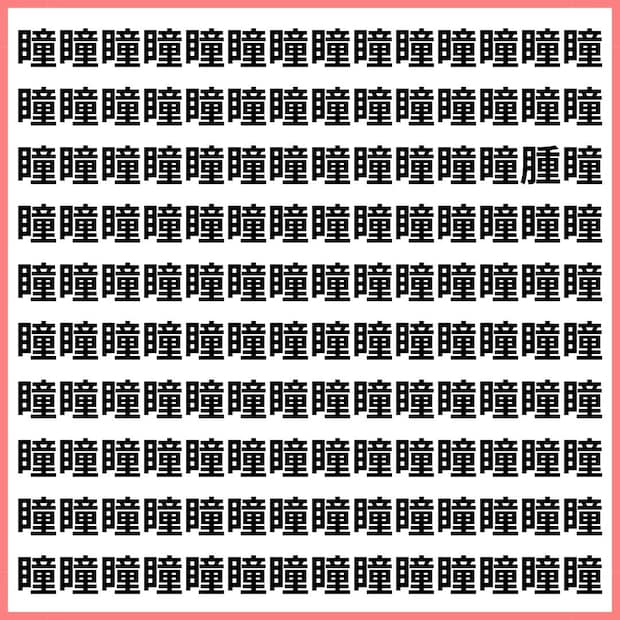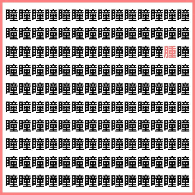 たくさんの「瞳」の中に、1文字だけ違う漢字が混ざっています。