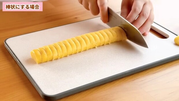中心に空洞ができないようにしっかり生地をつぶし、長さ約25cmの棒状に整えます。
